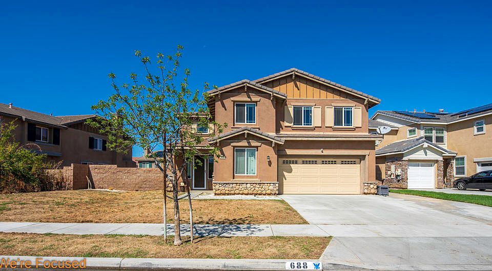 This is an amazing opportunity in the beautiful McSweeney Farms community. Seller is highly motivated and offering to buy down your interest rate or offer $$$ for closing costs! Come see this turn-key 5 bedroom/ 3 Bathroom home conveniently located in a highly desirable area of Hemet. Gourmet kitchen featuring granite countertops open plan kitchen and living room concept, is the ultimate entertainer's delight. Entire bottom floor was just upgraded with BRAND NEW Luxury Vinyl Planking. 32 PAID Solar panels providing amazing energy savings and includes a 240V car charger to accommodate your electric car. Additionally enjoy energy efficient cooling with 2 whole house fans. Huge open loft space with unlimited usage possibilities. Large Master bedroom with on suite bathroom, dual sink and vanity and his and her walk-in closets. Fiber optics providing fastest internet, TV and data speed. Spacious backyard. The community is well maintained with an Olympic sized swimming pool, heated Spa, and a beautiful clubhouse that houses a fitness center and sauna. 2 local parks, baseball field and basketball court. Riding and walking trails surrounded by breathtaking mountain views. Community also has 24 hour security. Welcome Home!