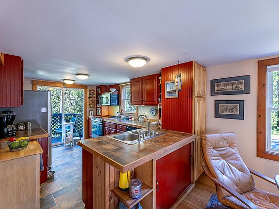 This charming two-bedroom, three-bathroom home sits on a lovely 0.75-acre lot with established gardens and mature trees, including pear, apple, and plum. The house is bright and welcoming, featuring an updated kitchen, replacement windows, beautiful wood floors, and a durable standing seam roof. The first floor has a primary bedroom with an en-suite bathroom and plenty of closet space, as well as a convenient office and a laundry room with a half bath. The yard is a gardener's delight with raised beds, perennial flowers, a tranquil rock-lined pond with a waterfall and lily pads. The two-car garage has been partially converted into a workshop with one car garage space. A lovely home in a great location! OPEN HOUSE Saturday August 23rd 11am to 1pm.