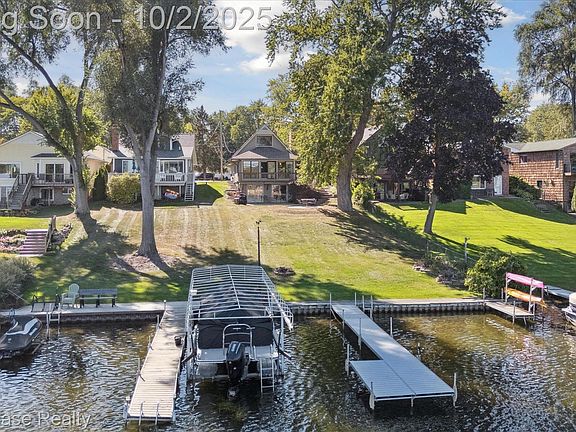 Wolverine Lake. Gentle incline 200’+ deep lot with seawall, dock, balcony deck, large patio
