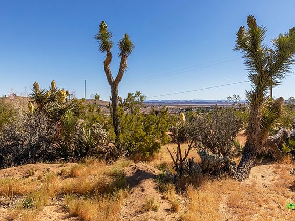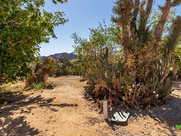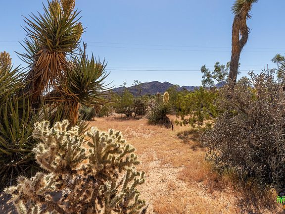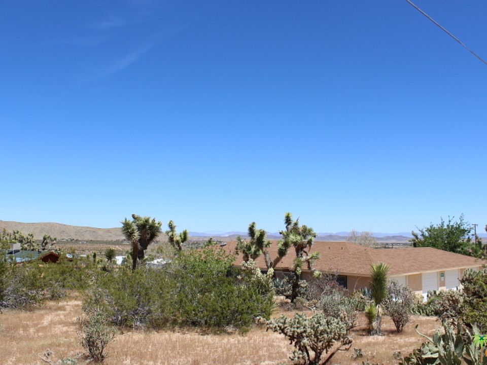 In Joshua Tree Village south hills on 1.25 acres of pristine natural beauty! An amazing find! The home is so private because it sits way back off the road and the trees, plants and gorgeous greenery makes you feel like your own paradise. The views are lovely of the Joshua Tree Natl Park, surrounding hills, mountains and valley below. Located just 5 minutes from the adorable Joshua Tree shops, restaurants and only 10 minutes from the Park Entrance! HUGE 1130 SF detached garage will make a perfect place for your toys, or a huge guest house! This home will be perfect for a large family or a perfect weekend getaway for vacationers! With 5 bedrooms, a family room and huge living/dining room and, there is room for all! And it is on NATURAL gas! Includes two great gas stoves for perfect winter ambiance. In pristine condition, has newer roof, new heating, new septic and more! Just a great property! There is a cute courtyard in back between the house & garage and vacant land on all sides