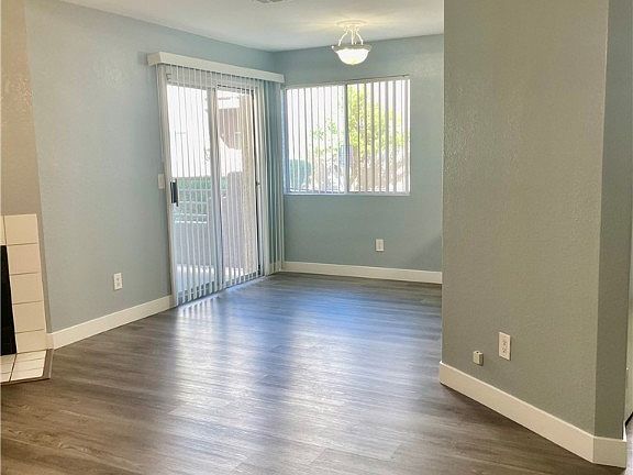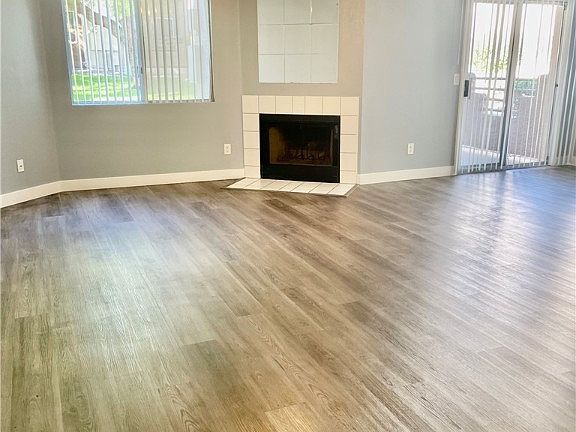 Fantastic super clean first floor unit, move-in ready. Large open living area with cozy fireplace. New paint, and flooring, all appliances included, ceiling fans and window coverings. Reserved covered parking spot. Two bedrooms with bath. Second Bedroom has 2 closets and direct access to bath. Located minutes from airport, freeway, dinning and shopping.