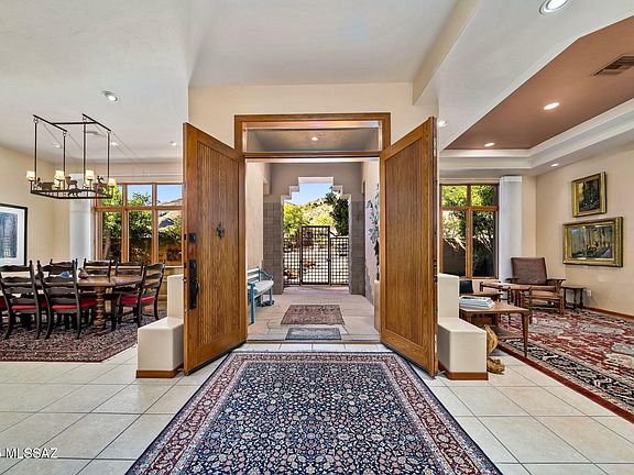 Spectacular remodeled Ventana Country Club Estates home boasts 5 bed, 4 bath + office/den with highest quality upgrades & incredible grounds designed by renowned landscape architect John Stropko (New Desert Gallery). Luxurious 4,947 sq.ft. home is a masterpiece of design & craftsmanship. Enter through the custom flagstone courtyard you'll be greeted by lush vegetation & exquisite custom metal fencing, creating a serene ambiance with multiple seating areas & bespoke stonework. Step through oversized entry into foyer that introduces soaring ceilings, a spacious living room & an elegant dining room all adorned with custom lighting. Chef's kitchen is perfection, featuring expansive granite counter space, rich wood cabinetry, double ovens, gas range, & sleek stainless steel appliances.See MORE The kitchen opens to expansive family room with custom built-ins & views of the private backyard. Kitchen seamlessly flows into a charming breakfast nook and breakfast bar with double French doors leading to the breathtaking custom designed patio, backyard, pool & spa. The first floor is home to the primary bedroom suite, a luxury retreat bathed in natural light, with a spacious ensuite featuring dual vanities, a walk-in closet, shower, and private patio access. Additionally, the first floor includes a versatile home office/den room, a second bedroom, two additional full baths, a massive laundry room, and a well set-up walk-in pantry. Ascend to the second level, where a generous loft area and full bath await, along with three sizable bedrooms. French doors off the upstairs family room open to a north facing balcony with stunning views of the Catalina Mountains. Outdoor space is a private sanctuary, featuring flagstone paths, stone columns, enlarged covered patio with fans and lighting, multiple shaded seating areas, and a built-in outdoor kitchen with a barbecue, sink, and prep area. The meticulously landscaped grounds include a pebble-tech pool with a hot tub, creating a resort-like atmosphere. Additional amenities include an oversized 3 car garage, huge heated and cooled bonus room, all inside the incomparable Ventana CC gates. Close to hiking and biking trails, Sabino Canyon, District 16 schools, shopping and restaurants. Memberships to Ventana Country club available for social, racket or golf. This is a truly special home we hope you come see today, it's a perfect blend of luxury and comfort, offering a unique opportunity to indulge in the best of Tucson living.