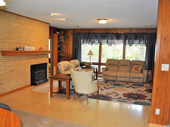 A nature lovers dream! Imagine fishing, hunting, and foraging for berries or mushrooms all on your own property. This all brick ranch combines rustic and mid-century styling. The open living room/ dining room brings in nature with large windows on both sides of the room. There is an activity room on one side of the house and a family room on the other! The attached 2 car garage has a storage room off the rear and if that's not enough there is an additional over-sized 2 stall garage to house all you toys! Paths are cut throughout the woods as well as plenty of lawn and a perennial garden surrounding the house.