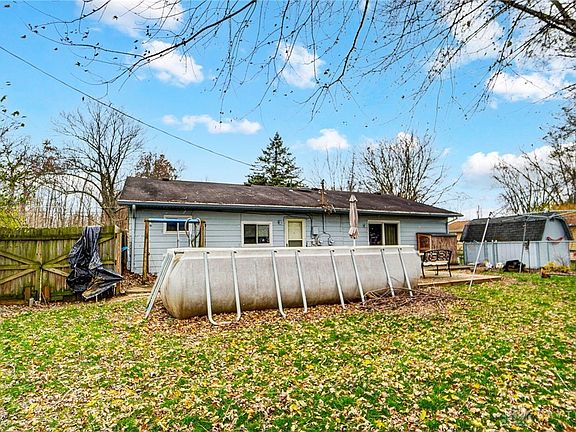 This home is full of potential! Upon entering you will be welcomed by a large Living room followed by a study. 3 Large bedrooms 2 full baths and a Huge kitchen. Kitchen features an electric fireplace. The wooded Yard is fully fenced with an above ground pool and several out buildings which convey with the property. This home is great for someone with a vision! A Must See!
