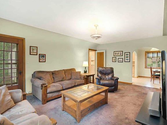 Charming three bedroom rambler nestled on a deep, wooded lot with lush gardens and a serene, private setting. The living room features cove ceilings. Beautiful hardwood floors enhance the main level. Relax in the inviting 3-season porch and bring your projects to life in the oversized 3-car detached garage. The newly finished lower level includes additional living space with a tiled shower and tiled floors. A wonderful living space in a peaceful and private, over half acre lot.