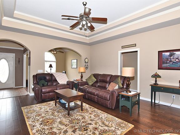 Country feel, city convenience! Spacious and beautifully maintained, this full-brick ranch sits on just under an acre with 2263 sf (CH) of living space, offering 3 beds, 2 ½ bath and an oversized 3-car garage. Inside, you’ll find an inviting layout with a large living area, formal dining, office area, and even a storm shelter in the garage for peace of mind. The large primary suite features new carpet, a walk- in closet and a spa-inspired bath with a Jacuzzi tub. Updates include newer laminate flooring, granite tiled countertops, 3 year old HVAC and a 5 year old hot water tank. Newer roof! Outdoors, enjoy lush Bermuda grass, mature landscaping, a sprinkler system, and a large back patio overlooking the expansive back yard, complete with a tree lined creek at the back of the property. No HOA fees and with neighborhood approval, a shop can be added! Don’t delay, set your showing time today!
