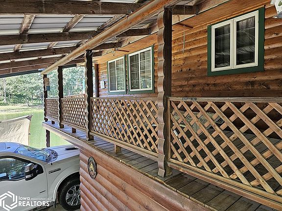 WOODED HIDEAWAY.... The private retreat you've been waiting for- a tranquil 3 bedroom, 1 bath home on 13 acres just south of Agency, Iowa. This log-cabin style raised ranch has a wrap-around deck overlooking a huge private pond! The home features 2 bedrooms and 1 bath on the main (upper) level. On the lower level, you will find the extra deep tuck-under garage, a utility room, mudroom and 3rd bedroom. There is a 18x20 outbuilding, perfect for storing recreational vehicles or equipment. Surrounded by timber, this property has so much to offer for outdoor recreation. Schedule your tour today!