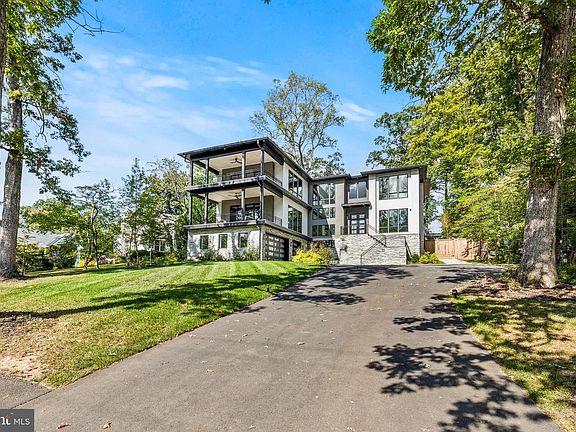 Contemporary home in McLean, built by Green Valley Custom Builders. Set well back from the street, the property rests on a deep lot with mature trees and a strong, private elevation. The home offers more than 9,400 square feet across three levels, with six bedrooms, two offices, and eight bathrooms. A two-story great room anchors the main level, framed by a gallery overlook and a full wall of windows facing the expansive rear yard. This gathering anchor supports grand-scale hosting, surrounded by more intimate formal spaces. The main kitchen features custom cabinetry, high-end appliances, and a large central island. Beyond it are the catering kitchen, wine bar, and walk-in pantry. The primary suite opens to a large private terrace through double glass doors and windows, all protected by automated shades. A private bar sits within the suite. The spa-style bathroom offers an oversized walk-in shower, freestanding tub, and heated floors. The lower level features a full bar, wine storage, a gym, a theater room, and a guest suite. The immaculate three-car garage opens directly into organized built-in storage and a dedicated dog wash. An elevator shaft is already framed for future installation. Outside, the tree-lined and fully fenced yard comes with a fantastic deck with a fireplace, built-in heaters, and cooking space, and yes, it can support a future pool and terrace. Located in a sought-after McLean community near downtown, the property offers privacy, scale, and convenience with direct access to the heart of McLean and a very comfortable commute into Washington, D.C.