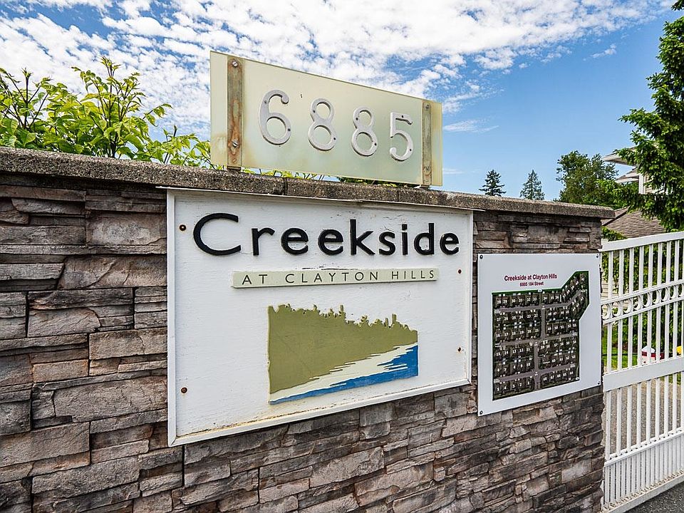 Welcome to Creekside at Clayton Hills, a highly sought-after 55+ community! This spacious duplex-style rancher offers everything on one level for easy living. The bright living room features vaulted ceilings, while the primary bedroom includes a walk-in closet and luxurious 5-piece ensuite. The second bedroom makes a perfect guest suite or home office. Enjoy a south-facing, fully fenced backyard, ideal for relaxing or entertaining. Updates include A/C and roof (approx. 4 years old). The home also offers a double garage plus 2 additional parking spots. Residents enjoy access to a clubhouse with full kitchen, gym, library, and pool table. Conveniently located just steps to Save-On-Foods, restaurants, Shoppers Drug Mart, and gas station. Come view today and discover your new lifestyle!