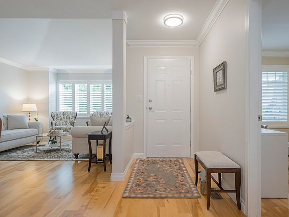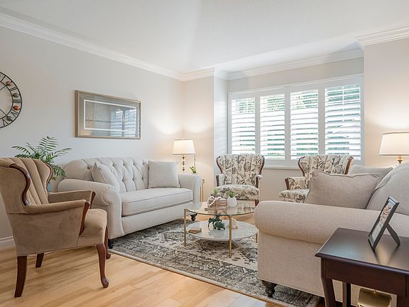 CREEKSIDE ELEGANCE! 2 bd/2 bath in prime location of the complex, siding onto greenspace & walking path, with visitor parking close by. Textured epoxy front entrance leads to immaculately maintained living area with beautiful updating completed by current owners. All upgrades have been professionally and tastefully done. Elite kitchen, quartz counters, large Island, pantry, S/S appliances. Maple hardwood in main area, tiled baths. New light fixtures throughout, quartz counter in b/rooms. A/C promises cool comfort in the summer & gas fireplace provides cozy winter evenings. Double garage features optimum storage with Jacobs ladder for access to attic space. Clubhouse offers kitchen, gym, library and pool table. Convenient location, close to shopping and all amenities. Move in and relax!
