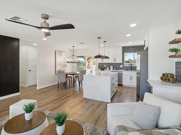 Beautifully remodeled home on a huge 10,000+ sqft VIEW lot! Light and bright upon entry, this is open concept living at its finest. This home exudes ‘attention to detail’ starting with the brand new kitchen that boasts a large quartz island with waterfall edge, slide-in range, wine fridge and stainless steel appliances. New laminate wood flooring throughout, custom paint inside and out, sleek modern bathrooms with meticulous tile work, new fixtures and lighting, brand new windows, new roof, new HVAC system and more. Relax under the pergola and look out onto the huge split level lot with functional upper and lower levels. Great potential for a private ADU or pool! One block from University Village Park. In the heart of University City and close to everything it offers.