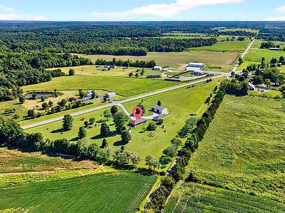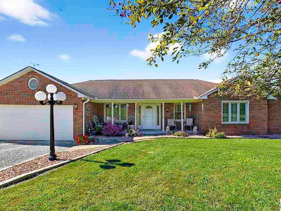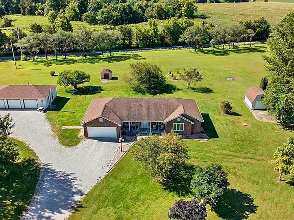 9.5 acres of country living at its best. Step inside this full brick ranch with amazing country views but still only 15 mins from town. This 3 bedroom, 2 bath home with an open kitchen, dining and living room has an updated roof, geothermal furnace in 2020, new vinyl replacement windows in 2016, interior paint within the last few years. The front covered porch welcomes guest inside the home. There is a 2-car attached garage along with a 3-car detached garage/workshop that's heated. Don't forget to stop by the 36x60 pole barn that is finished with its own full bathroom. Also on the property is a 12x16 storage shed. This unique property original built in Indianapolis by the airport, was moved to its current location in 1998. Come enjoy the front porch and see what this home has to offer.