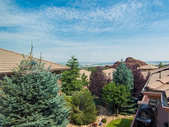 Charming ranch style open-concept home in prestigious gated community of Roxborough Park with gorgeous landscaping and stunning mountain and city views. Upgrades and designer touches throughout this impeccably maintained home. Well planned large kitchen with new black stainless steel appliances, pantry, breakfast nook and retractable storm door leading to patio with spectacular views. New wood flooring in dining room, living room and kitchen. The main floor hosts a roomy office with an attached bath. The master suite has a large walk-in closet, 5 piece bath featuring custom shower and jetted tub. The walk out basement has 2 additional roomy bedrooms adjoined by a full bath. The large finished rec room leads to a private covered outside patio with included hot tub! Unfinished areas can be used for exercise room or storage. Enjoy 12 miles of maintained trails to hike, golf at Arrowhead Golf Course, Chatfield State Park, Roxborough State Park. Close to C-470, Wadsworth, Hwy 85. This premier Roxborough Park neighborhood features 24-hour security at gate checkpoint, clubhouse & activity center. Please be sure to check out the extensive Matterport 3D tour and videos of this beautiful home.
