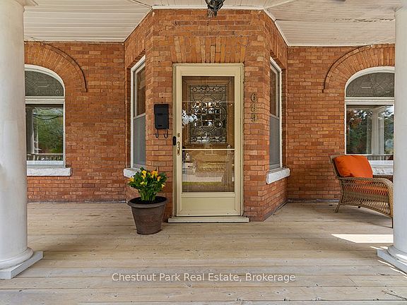 Discover a rare architectural gem this grand 2.5-storey century home masterfully blends early 1900s craftsmanship with modern comfort. Thoughtfully expanded in 2006, it offers over 3,000 sq. ft. of beautifully appointed living space in downtown Owen Sound. From the stately 35 ft covered front porch, ideal for morning coffee or evening cocktails, to the elegant interior, every detail reflects timeless character. Inside, rich hardwood floors, high baseboards, elegant mouldings, and stained-glass windows evoke warmth and sophistication. The designer kitchen is a chefs dream, featuring granite countertops, a large island with prep sink, warming drawer, and wine fridge. A butlers pantry adds storage and function, while the adjoining eat-in area opens to a private deck overlooking a mature, picturesque backyard with hot tub. A stunning custom mudroom with built-ins and heated floors completes the main level. Entertain in the formal dining room or unwind in the inviting living room. Upstairs, the 2023-renovated main bath offers spa-like luxury with heated tile floors, double sinks, glass shower, and a claw-foot soaker tub. Four distinctive bedrooms provide generous space and charm with built-in dressers and closets. The finished third-floor loft, once a self-contained suite offers endless versatility. With a spacious family room, bedroom, and 3-piece ensuite, its ideal as a studio, teen retreat, guest quarters, or in-law suite. Perfectly located just steps from downtown shops, restaurants, the farmers market, library, and cultural attractions, this remarkable home combines modern living with historic charm. A truly one-of-a-kind residence, timeless, elegant, and perfect for families or multigenerational living. Own a cherished piece of Owen Sounds history, with room to live, gather, and grow.