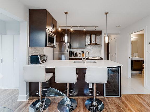 Exceptional, one-of-a-kind, 2-bedroom corner unit located on the third floor with views of the private gardens and tranquil water features right outside your window. Nestled on the quiet side of the building, this home provides a serene escape from the city. A spacious open-concept kitchen that seamlessly flows into the living area, perfect for entertaining. The unit boasts two bedrooms, a solarium, and convenient in-suite storage, making it an ideal sanctuary for both relaxation and functionality. This unit comes fully furnished, providing a seamless transition into your new home. Previously rented on a short-term basis through a reputable local management company, it is a perfect turnkey solution. Comes with 1 parking & in suite storage room.