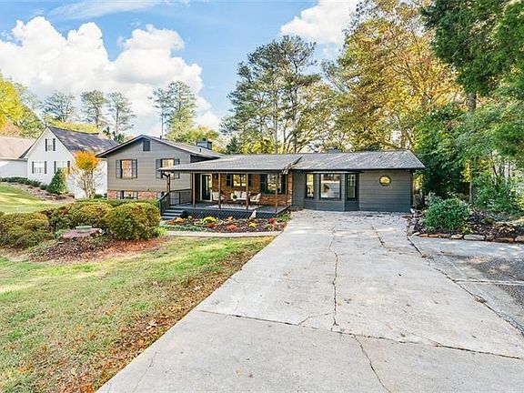 Welcome Home to this stunningly renovated mid-century gem! Let me boast about this 5 bedroom, 3 full bath home featuring a new Master Suite Retreat on the Main Level with a fireside sitting room and designer master bath! You are welcomed immediately by the covered rocking chair front porch overlooking the colorful fall plants in your large front yard -a tranquil, park-like setting for optimal relaxation. This home is located only minutes from the heart of Smyrna, quick access to the East-West Connector, Covered Bridge Area, only 7.7 miles to Truist Park and approximately 30 minutes to Buckhead, Midtown and even Atlanta Hartsfield Airport. As you step inside, you're greeted by a beautiful foyer that walks into a spacious open-concept layout where the kitchen, family room, and dining room have been combined, creating the perfect space for entertaining. The all-new kitchen is a chef's dream, featuring a pantry, quartz countertops, gorgeous cabinetry, stainless steel appliances, butcher block breakfast bar/island and flawless designer touches with all new fixtures, lighting and modern upgrades throughout! Special features of this home are the refinished original hardwood floors that have been professionally sanded and restained - you will love them, recessed lighting throughout, all new bathrooms and the perfect blend of modern comfort and classic style! The upstairs level offers the original primary suite, 2 additional bedrooms and a stunning new full bath! The lower level is equally impressive for endless possibilities with the 5th bedroom for in-law/teen suite, hobby room or home office, a huge fireside family room, the 3rd new full bath and the laundry closet complete with a brand new stackable washer and dryer! The gigantic level and fenced backyard is overlooked by the huge party deck - perfect for your firepit and entertaining family and friends!