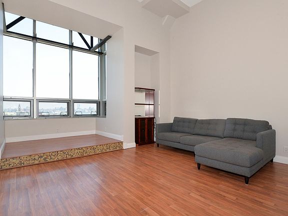 Proudly introducing to the market, this fabulous east facing luxury Loft! Finely appointed with granite counters, stainless steel appliances, in unit washer/dryer and Nest-Smart thermostat. This unit boasts 875 Square feet of living space with 14.5' soaring ceilings, oversized windows and breathtaking direct views of NYC from the 8th floor. Close to the Hoboken PATH, building amenities include, 24 hour doorman, gym, Courtyard with BBQ and a pet friendly building. Don't miss your opportunity to live in the best location in Jersey City/ Hoboken.