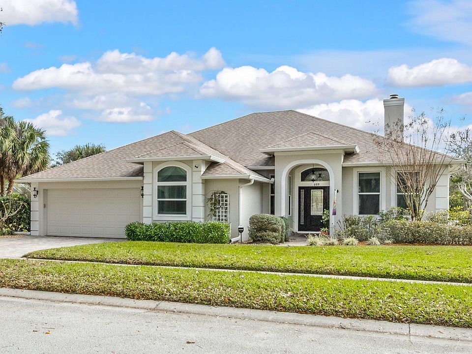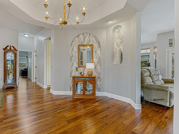 This home is a must see. Fully updated 4 bdr, 3 bath home in the desirable community of Watermill. Nestled onto a 1/3 acre homesite providing privacy, elbow room, and outdoor space. The warm & inviting interior includes hardwood & tile flooring throughout, a fully modernized kitchen which is sure to delight most any chef, w/42'' uppers, soft close doors, spice drawer, roll out trays & quartz countertops. The open & bright family room has a gas fireplace which operates at the touch of a remote and has a 300 year old rescued mantel. All baths have been updated, freshly painted interior & exterior, all impact windows and doors throughout (no need for hurricane panels), new tankless water heater, new roof in 2019, 10 ft ceilings, and artesian well for the lawn . Relax in the beautiful heated pool providing yr round use & tropical landscaping, brick paver driveway w/extra parking space & so much more. Close to shopping, NASA, Space X, Blue Origin, the beaches & 45 min to Orlando attraction