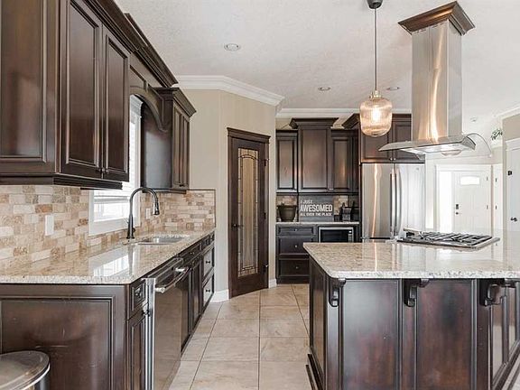 Welcome to 689 Heritage Drive – A Spacious 4 bedroom, 3.5 bathroom, plus BONUS ROOM Two-Storey Home with Legal Suite and Premium Finishes. Step into this beautifully appointed home with 3098 developed square feet of quality craftsmanship and thoughtful design. With rich hardwood and tile flooring throughout—this is a true no-carpet home, perfect for style, durability, and easy maintenance. The grand foyer greets you with soaring vaulted ceilings, setting the tone for the impressive open-concept main level. The heart of the home is the chef’s kitchen, featuring stainless steel appliances, a gas stove with exterior venting, striking espresso cabinetry, stunning pendant lighting, and a massive walk-through pantry that conveniently connects to the mudroom, main floor laundry, powder room, and the oversized double Heated garage—boasting high ceilings and ample space for your trucks and additional storage. The spacious living room includes a cozy gas fireplace, while the expansive dining area opens through patio doors to a large deck overlooking the fully fenced backyard, complete with a firepit—perfect for entertaining. Upstairs, hardwood continues to a bright bonus room and into the elegant primary suite, accessed through French doors. The primary features a luxurious ensuite with travertine tile floors, jacuzzi tub, double vanities, stand-up shower, and a massive walk-in closet. Two more generously sized bedrooms- both with walk in closets, and a full bath complete the upper level. The fully developed basement offers a fantastic income opportunity with a one-bedroom legal suite, currently rented for $1,700/month. This well-appointed suite features its own private entrance, separate furnace and laundry, a full kitchen with the same upgraded espresso cabinetry as upstairs, a generous living/dining area, and a beautiful bathroom with in-floor heating—providing both comfort and style for tenants or extended family. Whether you're looking for multi-generational living, a mortgage helper, or simply a spacious and stylish family home, 689 Heritage Drive offers it all in a beautifully finished package. This property also includes custom blinds throughout and Central air conditioning. Amazing location, across the street from biking and walking trails, parks, and close to schools and the skatepark. Call today!