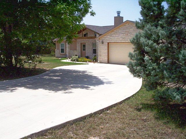 High ceilings throughout this open, spacious home. Floor to ceiling rock fireplace, stained concrete floors, nice kitchen with custom wood cabinets, bar and tiled counters and backsplash. Large, covered deck across back of home offers good space for entertaining and taking in those great sunsets and hill country views. This 3/2 has a wonderful floor plan with no wasted space. Master bath has garden tub and separate tiled shower. 11 x 12 Dining area in great room. Kitchen area 11 x 12.8 in great room.