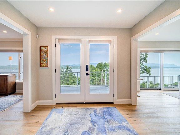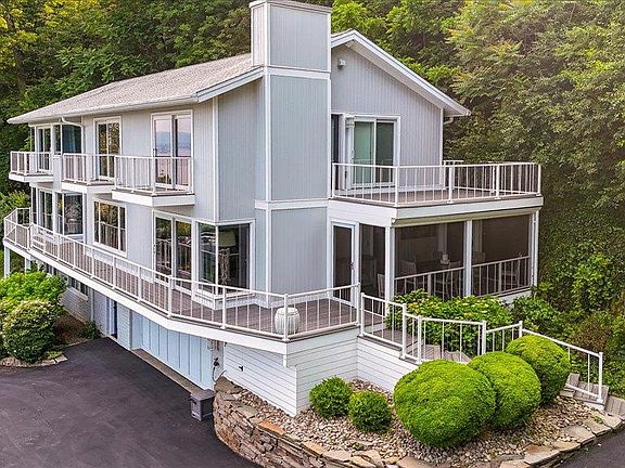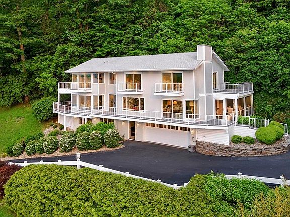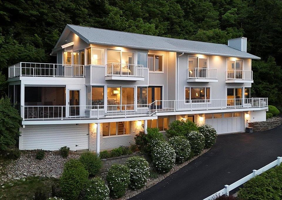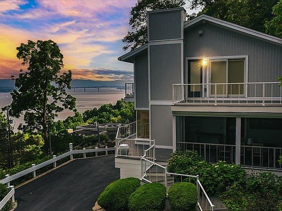 Presenting an exquisite contemporary residence on Balmville's prestigious River Road, offering unparalleled views of the Hudson River, the majestic mountains, and the iconic Newburgh-Beacon Bridge. Fully reimagined in 2022, this 3663 sq ft home blends refined design with effortless functionality. This property features four bedrooms and two full and two half bathrooms. The heart of the home is the expansive living room, complete with a gas fireplace, creating a warm and inviting ambiance. Just beyond is the chef's kitchen, featuring quartz countertops, premium stainless steel appliances, and a central island that effortlessly connects the family room and dining area, creating an open, cohesive space ideal for everyday living and effortless entertaining. The primary suite is a true escape, complete with a spa-like bath, custom walk-in closet, and a private deck designed for taking in breathtaking sunrises. Each additional bedroom also enjoys access to its own deck, offering a seamless connection to the outdoors and unmatched vistas at every turn. The main bathroom features a quartz-topped double vanity, tub, and shower. For added convenience, a full-sized washer and dryer are located on the bedroom level. Screened-in decks on the main level invite three-season lounging and dining, while the finished lower-level bonus space - with private entrance and 1/2 bath - offers ideal flexibility for guests, a studio, or home office. The two-car garage is outfitted with built-in floor-to-ceiling storage and a worktop, and a professionally finished floor, adding to everyday ease. From its thoughtful interior upgrades to its show-stopping location, this exceptional property offers a rare opportunity to live luxuriously within one of the Hudson Valley's most treasured landscapes. Short distance to the Powelton Country Club, I-84, I-87, 9W, Beacon's Metro North Station, Stewart International Airport, and all that the Hudson Valley has to offer.