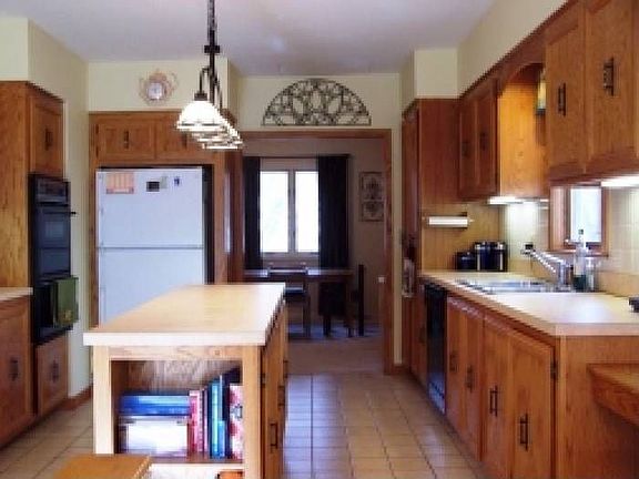 Nicer Oak kitchen cabinetry, kitchen island, and built-in breakfast nook with seating. Second bedroom is located in basement. Newer furnace. Small dollhouse in need of some work, to include basement area. Fenced yard, and detached garage. Rear deck.