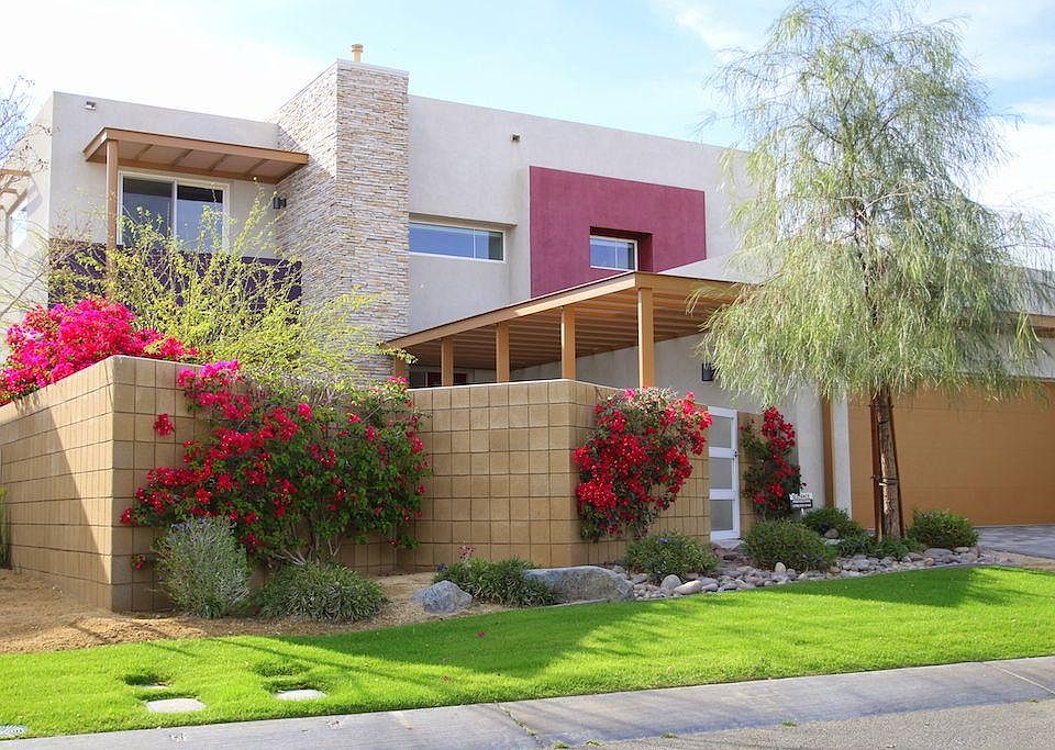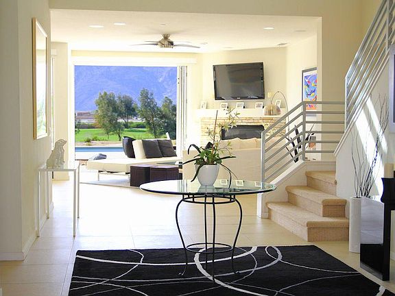 Located in the prestigious gated community of ESCENA in the heart of Palm Springs, just 15 minutes' drive to downtown shops, restaurants and nightlife, this 2850 sq. ft. two-story, 2-bedroom plus loft/3rd bedroom, 2.5-bathroom, mid-century modern golf course home features a bright and airy open floor plan, a double door entry with a dramatic two-story entry foyer, two master suites, a loft den/third bedroom, and folding glass walls across the back of the house opening onto spectacular unobstructed views of Escena Golf Course and the San Jacinto Mountains.