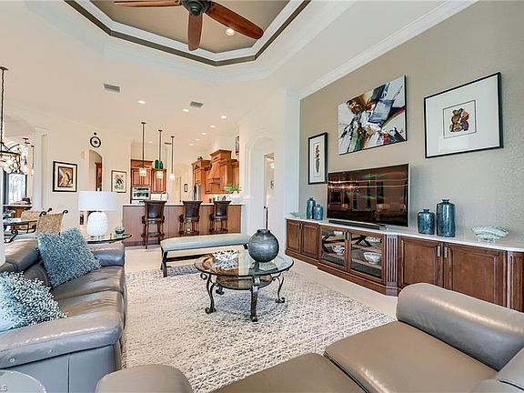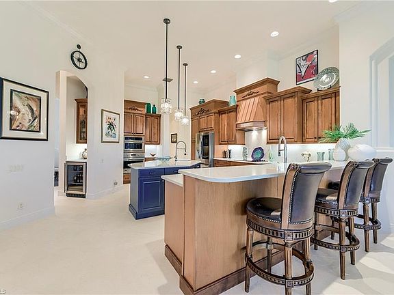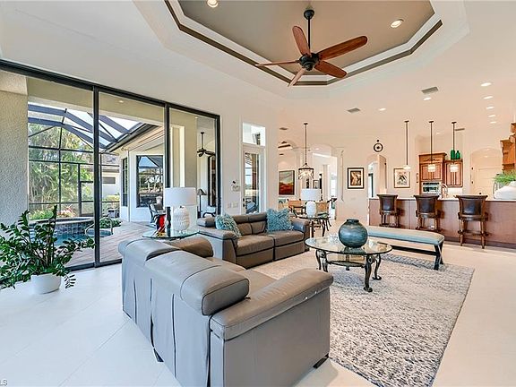 Overlooking the 18th hole of the renowned Shadow Wood Country Club Preserve golf course, this magnificent 4-bedroom, 4.5-bath single-family estate with den and recreation room captures the essence of refined Florida living. Encompassing 4,258 square feet all on one level under air and 6,925 total square feet, every space has been artfully designed for luxurious comfort and effortless entertaining. At the heart of the home, a custom-designed luxury kitchen showcases quartz counter tops and backsplash, exquisite cabinetry, professional-grade appliances, and elegant finishes that elevate every culinary experience. A fully equipped wine bar complements the open living areas. The recreation room with a billiard table, second wet bar, and breathtaking golf course views makes for the perfect gathering with friends or step outside to enjoy 1,806 square feet of screened-in lanai space, where soaring ceilings, a sparkling pool and spa with waterfall features, a full outdoor kitchen and lush golf course views create an inviting setting for relaxation and entertaining. Here, the tranquil golf course backdrop blends seamlessly with the home’s resort-like ambiance, offering a private retreat ideal for the enthusiast seeking both exclusivity and easy access to amenities and abundant tee times at Shadow Wood Preserve. Throughout the residence, designer lighting, crown molding, custom cabinetry, and refined shelving demonstrate superior craftsmanship. Thoughtful upgrades such as the new AC system, water heater, pool pump, fresh interior and exterior paint, hurricane-rated windows, and Storm Smart Screens on the lanai, ensure lasting beauty, comfort, and peace of mind. An elegant side-mounted three-car garage offers storage solutions for vehicles, golf carts, and gear along with the spacious floor and design features of this quality Arthur Ruttenberg Estate in Shadow Wood Preserve. Shadow Wood is an unbundled luxury community offering the option to tailor your lifestyle through exclusive memberships to Shadow Wood Country Club and The Commons Club. Whether your passions include 54 holes of championship golf, professional quality tennis center, bocce, pickleball, the Private Beach Club, a state-of-the-art fully staffed fitness center, spa services, or private dining and social events, there is a membership suited perfectly for you.