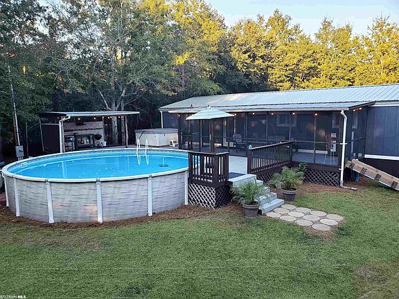 Completely renovated 2bed 2 bath 1272 SF home on 3.2 acres in serene Bon Secour. This turnkey home shows excellent craftsmanship and care with the updates!! Upgrades include: Cement board siding + Metal Roof + Double paned Vinyl Windows + Interior/Exterior doors and trim + Fiberglass Insulation (including interior walls) + ½” Drywall + Paint inside and out + Flooring + Kitchen cabinets + Marble/Butcher Block countertops + Stainless appliances + recessed LED lighting + Tiled Bathrooms including huge walk-in river stone shower + Walk-in master closet + Pex Plumbing + Water heater + Two screened in porches + Grilling station with Blackstone Griddle + Hot Tub + 24’ Pool with vacuum + Trex maintenance free decking! Home has a 12' x 32’ insulated shed. One side is a work area with shelves and workbench, the other is air conditioned storage with built-in shelving, all with electric plus 3 sided pole shed for outdoor tools and mower. Property has well and septic for low cost utilities. Gulf Shores beach is only a quick 12 mile ride. Conveniently located close to Tin Top restaurant, Billy’s & Aquila’s seafood market, boat ramps and historic Magnolia Springs.