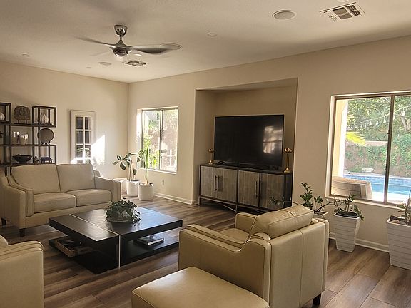 Fenced pebble tec poolCovered patioUpdated kitchenPrimary suiteSeparate bath and showerHigh volume ceilingsCeiling fans