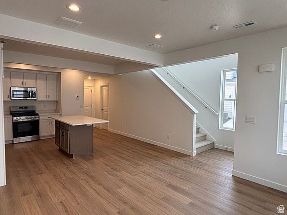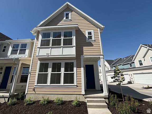 This brand new, gorgeous home has 3 bedrooms, 2.5 bathrooms and a 2 Car Garage. It is an end unit home on a corner lot. All in a community that is unmatched with parks, sports courts, pools, and more! It has upgraded Quartz countertops throughout including undermount sinks. It also has beautiful 42" cabinetry with crown molding. The home includes stainless steel appliances and a gas range. The upgraded faucets in the home are gorgeous. The open floorplan is welcoming and comfortable. It has a large owner's suite & walk-in closet. There is a covered porch to sit and relax on a nice day. The Daybreak community is in a very desirable location in South Jordan not far from all the everyday conveniences.