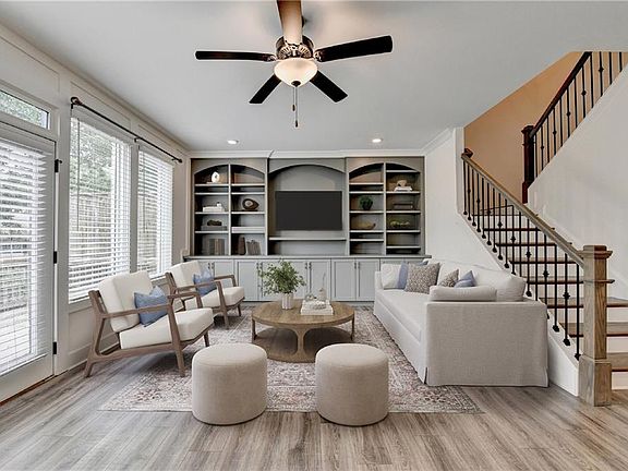 Welcome to this stunning modern white brick townhome in the heart of Sandy Springs! Offering three levels of beautifully designed living space, this home features elegant LVP flooring, a neutral color palette, and stylish updated lighting throughout. As you enter on the lower level, you'll find a private bedroom and full bathroom—perfect for guests or a home office—along with convenient garage access and a charming staircase leading to the main living area. The spacious open-concept kitchen is a true highlight, boasting sleek gray cabinetry, quartz countertops, a large island, ample storage, a generous dining area, and a walk-in pantry. Flooded with natural light thanks to large windows, the inviting family room offers built-in bookcases and direct access to a sunny deck—ideal for relaxing or entertaining. A modern half bathroom completes the main level. Upstairs, unwind in your luxurious owner’s retreat, featuring a spa-inspired ensuite bathroom with an expansive walk-in shower, double vanities, and a spacious closet. You’ll also find two additional bedrooms, a full hall bath, and a convenient laundry room on this level. Nestled in a prime location with quick access to Georgia 400, shopping, and a variety of top-rated restaurants, this townhome combines comfort, style, and unbeatable convenience.