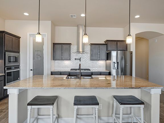 In up-and-coming Rio Rancho, NM you'll find this beautiful newer build. This home has all the characteristics screaming welcome home. You're greeted by a low to no maintenance xeroscaped yard that serve as the starting point for the experience this home will bring to your housing search. Rare to this area, you'll enter through a small dedicated mud space that leads to the great room. Here you'll be become obsessed with the coffered ceilings and amazing bronze light fixtures that you'll find throughout the house. This open floor concept keeps things modern, sleek, with a lot of natural light. The Gourmet kitchen features stainless steel appliances, a farm sink, and beautiful cashmere cream granite counter tops perfect for a delicious spread. This home provides 4 bedrooms, 2 baths