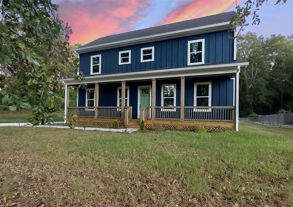 Get ready to unlock the door to endless possibilities in this stunning brand-new construction, perfectly poised for its new owner to make unforgettable memories. With its rich finishes, 4 spacious bedrooms, and 3 elegant full baths, this residence is a true masterpiece. The charming rocking chair front porch sets the tone for a warm and inviting living space. Inside, the main level boasts one bedroom with a full bathroom, while LVP flooring adds a touch of sophistication throughout. The gourmet kitchen is a culinary dream come true, featuring quartz countertops, ample cabinetry, and generous storage space. Marble and tile finishes elevate the bathrooms to a spa-like oasis. Additional highlights include walk-in closets and a striking accent wall leading upstairs to the serene primary bedroom, complete with a double vanity. The expansive backyard beckons you to unwind on the deck, perfect for entertaining and making lasting memories. With NO HOA fees and a prime location near shopping and dining hotspots, this property offers the ultimate blend of freedom and convenience.