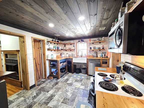 Beautiful farmhouse kitchenDetached garageLarge fenced yardComfortable one-level livingTwo garden spacesLocally hand-hewn wooden accentsSpacious master suite