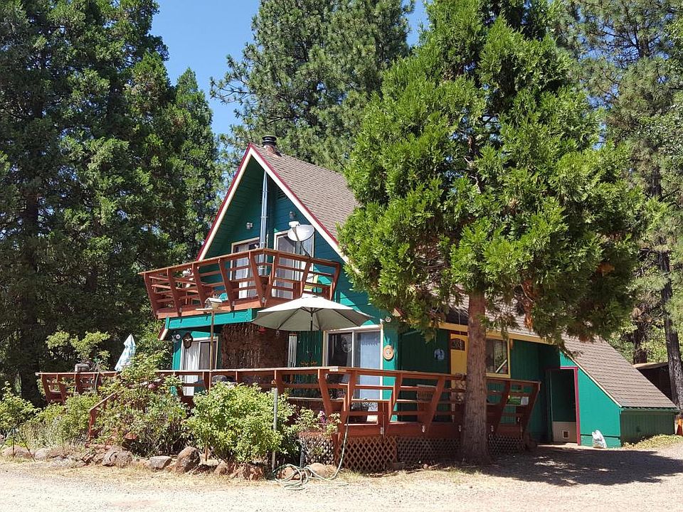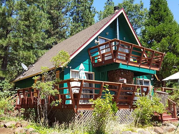 Peaceful Mountain Top 3 bed, 2 bath chalet style home on 5 private acres in the pines with valley views. Home is located at end of road adjacent to timberland with two bedrooms, 1 bath down and 1 bed, 1 bath up. Cozy livingroom with fireplace and kerosene heater. Nice patio decking, detached 2 car garage, oversized RV/Carport, garden area and park like setting. Call today CB879