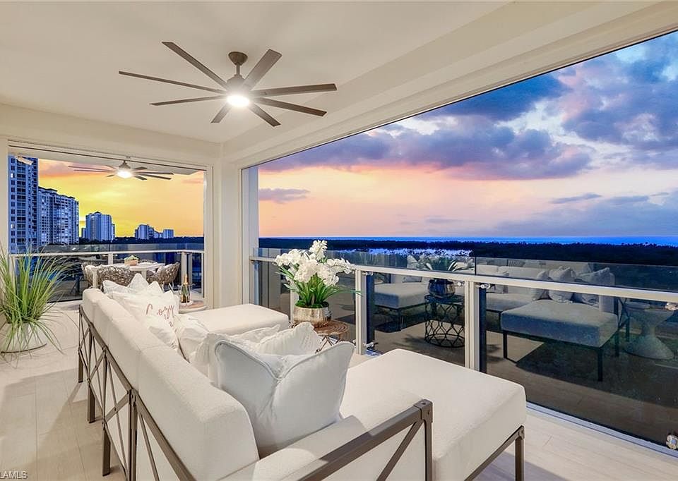 Live a lifestyle immersed in sweeping Gulf views that extend in every direction, showcased by floor-to-ceiling walls of glass enveloping this barely lived-in 6th-floor residence at Mystique—Pelican Bay’s newest luxury high-rise. This like-new residence, designed by MHK Architecture and Planning, with exquisite finishes by Build LLC, offers all the benefits of new construction without the wait. Natural light pours through every room, illuminating a gracious layout that flows seamlessly between the main living areas and the balcony, with unobstructed views. Masterfully finished, the residence pairs clean modern lines, timeless architectural details, and distinctive accents like a coral stone rock wall feature in the entry, and live moss-scaped dining room wall. Designed for both everyday comfort and stylish entertaining, the interiors feature well-proportioned living spaces and curated, high-end finishes. The kitchen is a showpiece, with custom cabinetry, premium appliances, a large island, and built-in banquette seating with a view. The primary suite offers a private sanctuary with a spa-like bath featuring a shower with Gulf views, an oversized soaking tub, and a custom-designed walk-in closet. A serene writing nook adds a personal touch. The spacious private office with custom built-ins provides versatility as a den or media room. Each guest suite includes an en-suite bath, including a charming bunk room designed to sleep six—ideal for visiting friends or family. Every space has been carefully planned to balance beauty and functionality, with timeless finishes and modern comforts. Life at Mystique offers exclusive access to Pelican Bay’s premier amenities. Enjoy a private stretch of beach complete with dedicated chair service and a resident-only beachfront restaurant. Mystique’s location places you just steps from Tram 6, making beach days effortless. Onsite, residents can unwind in the resort-style pool and spa, stay active in the cutting-edge fitness center with wellness-focused programs, or catch a film in the private theater. A 24/7 Front Desk/Concierge Service/Security with an impeccable staff who truly attends to every resident’s unique needs and two coveted upper-level parking spaces adds to an everyday lifestyle of convenience.