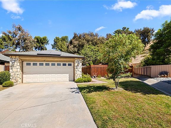 Discover this charming 3-bedroom, 2-bath home perfectly situated at the top of a peaceful cul-de-sac, offering stunning views and a wonderful blend of comfort and convenience. Inside, you’ll find an inviting living room with a cozy gas fireplace and durable vinyl plank flooring throughout, while the bedrooms feature soft, plush carpeting. A stylish barn door separates the master bedroom wing for added privacy and generous closet space throughout. Light and bright galley kitchen with eat in breakfast area, with appliances and the stainless refrigerator is included. Remodeled hall bathroom. Private en-suite complete with a bedroom, kitchenette, and its own entrance — perfect for extended family or guests. Step outside to a spacious backyard featuring a custom powered storage shed and a jacuzzi under the stars, ideal for entertaining or relaxing evenings at home. Additional highlights include: PAID OFF Solar system with battery backup, Tankless water heater & water softening system, keyless entry for modern convenience, Central heat & A/C for year-round comfort and located close to the college and everyday amenities. VA assumable loan! This home truly has it all. With unique features, energy-efficient upgrades, and an unbeatable location, this is a must-see property you don’t want to miss! Schedule your private tour today and experience this gem for yourself!