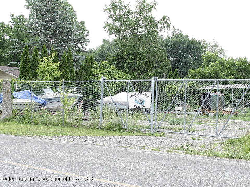 Vacant lot with all around fence and surrounded by trees is in the backyard of Morrison Lake and Morrison Lake Golf Course. This lot extends 30 ft south beyond the fence. Half of the lot is newer gravel and half is asphalt.