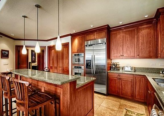 Finest quality throughout - African Mahogany cabinets and trim, brushed limestone floors and natural stone slab counter tops with stainless steel appliances and 9+ ft. ceilings. BBQ and wet bar on lanai and large sliding pocket doors. Excellent rental income. Turnkey Furnished. Just steps from your own personal Beach Club Pavilion with infinity edge pool overlooking the beach shoreline. Natural lava spa hot tub with sand bottom, children's pool with sand bottom & waterfall. Open air cabana, fully equipped exercise hale with views of pool and ocean and direct access to Aneahoomalu Beach and two guest hales for guests. Close to King's & Queen's Shops, golf and Dining. VRBO #246789.