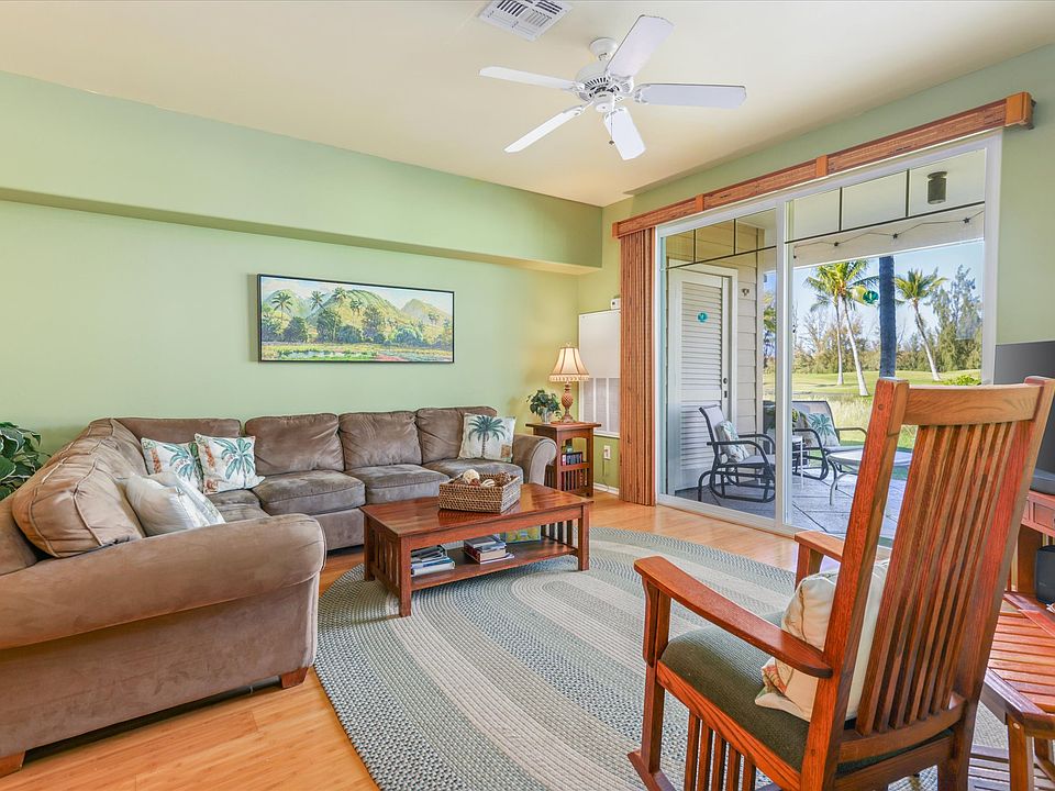 As you step inside, you're greeted by the warm tones of bamboo flooring and will be drawn to the lanai space which backs up to the Waikoloa Beach golf course. Both bathrooms have been updated and showcase thoughtful upgrades!