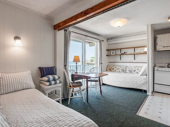 Commanding a prime spot perched directly above Front Beach, this longstanding waterfront vacation property offers five units of turnkey, self contained 1-2 bedroom apartments with steps down to the water and stunning, unobstructed views of Sandy Bay. Despite being in the middle of the town’s burgeoning cultural and dining scene, just steps from world-renowned Shalin-Liu Performance Center and the many galleries, shops, and restaurants of Rockport’s picturesque Main Street, the location provides a sense of being tucked away at water’s edge. A rare opportunity to own a landmark property that hasn’t changed hands in generations, with many possible uses as continued lodging, a restaurant, or an in-town vacation home—any of which will let you realize the dream of waterfront living in one of the North Shore’s most desirable seaside communities. Units include decks overlooking Front Beach and two compact car parking spaces.