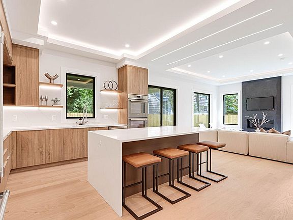 Stunning new construction located in the heart of Newton Highlands. This modern single-family alternative is flooded with sunlight and has a fabulous view of the grounds. The entry-level has 10 ft ceilings and an open floor plan in the living/dining room/kitchen: living room features a stone fireplace; chef's kitchen is state-of-the-art and leads out to a covered patio and the beautiful yard. There is an office/bedroom bathroom on this level, direct access from the 2-car garage to a mudroom, and a powder room. The second level features a primary suite w/spa-like bathroom and walk-in closet, plus two additional en suite bedrooms. On the top floor, there's a large open area perfect for a playroom or family room. The finished basement with its own entrance offers an entertainment/playroom and an additional bedroom and bathroom. This wonderful home is perfect for nesting and for entertaining, plus steps to great coffee shops, restaurants, and Newton Highlands Green-Line stop. First, last, security, and broker fee. Tenant to pay for all utilities.