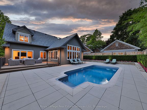 This beautiful turn-key residence offers the rare combination of contemporary finishes and conveniences all within steps of the Waterfront trail and Downtown Oakville. This beautifully maintained bungaloft-style residence with nearly 3000SF above-grade living space features a main floor Primary suite & main floor Laundry with the bonus of 2 additional bedrooms and bathrooms on the second floor. Gracious front entry hall with hardwood floors leads through to the Great Room and Kitchen. The top-of-the-line Downsview kitchen with quartz counters and slab backsplash,48" Wolf range, full height SubZero Fridge & separate set of Freezer Drawers, Miele Dishwasher. Breakfast bar overlooks the Great Room with massive vaulted ceiling encompassing an informal Family Room & Dining Area. The top-of-the-line windows and doors features electronic remote Hunter Douglas louvered blinds. This room can be transformed at night into at state-of-the-art movie room with retractable projection screen. Main floor Den/Office. Primary suite with walk-in closet and renovated ensuite Bathroom, dual sinks and large glass shower. Upstairs find a bright open concept reading nook, two large bedrooms and an additional 1 1/2 Bathrooms, offering excellent space for family and guests. The lower level is finished and is ideally suited for storage, recreation and/or hobby space. Attached garage with epoxy flooring and inside entry. Family Room walk-out to new composite deck overlooking the private, fully landscaped garden with in-ground pool. This impeccably designed and easy to maintain property is sure to impress. Don't Miss