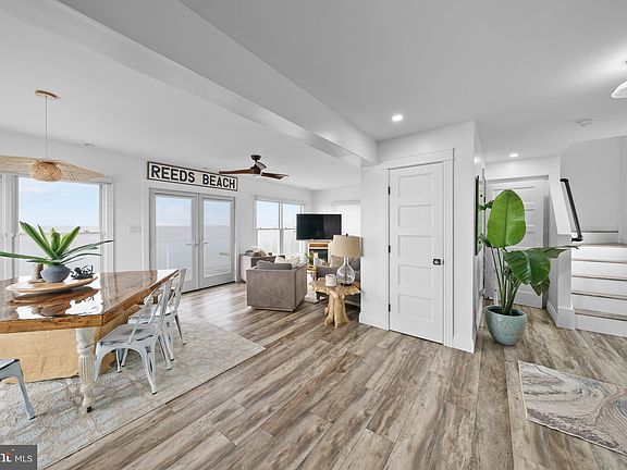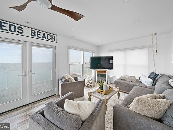 Experience luxury coastal living in this one-of-a-kind waterfront home, perched directly on the beach with breathtaking panoramic views of the Delaware Bay. From sunrise reflections to the most amazing sunsets, this home delivers tranquility and sophistication. This quintessential bay front home experienced an extensive interior and exterior renovation in 2022-2023 which included the demo and reconstruction of the 2nd floor and interior renovation of the 1st floor. A new brick paver driveway leads to a coastal design exterior featuring glass rails for unobstructed views on both sides of the house with gated sections securing children and pets. The Ebay (Japanese Mahogany) decking and glass-bottom area on the beach side deck provide a truly unique way to see the water beneath your feet. Custom outdoor benches with cushions create an ideal seaside lounge. The antique cypress wood outdoor shower with carved wave details adds to the coastal charm of this property. Inside you’ll find luxury Pergo vinyl flooring, custom lighting throughout and Quartz countertops and backsplash. The open kitchen area features all new appliances including a Bosch washer and dryer. The home is equipped with spray insulation; a new high velocity HVAC system and LED dimmable lighting. The primary bedroom offers sweeping bay views from your bed and a custom closet with built-in shelving. The spa-like full main bath features a floating vanity, vessel sink, glass shower doors and contemporary fixtures. This bath also has a generously sized linen closet. The spare bedroom features large windows for more massive water views. The home office doubles as a quest space that the owners use as extra sleeping quarters. Additional amenities throughout the home include custom Sun window shades, a half bath on the 1st floor with designer finishes, ample attic space (climate controlled), and accent lighting along soffits for evening ambience. Just step outside and at high tide you can fish or crab right off of your private deck, end your day paddle boarding at sunset or just relax after a day at any of the nearby beaches. Just minutes from Stone Harbor, Avalon, the Wildwoods and Cape May, you’ll enjoy the best of both worlds – fine dining and entertainment close by, with peaceful seaside living when you return home. Wake up to the sound of waves, enjoy the glow of the sunsets, this special home is an ultimate Delaware Bay retreat. *Last 5 photos are some of the renovation photos.