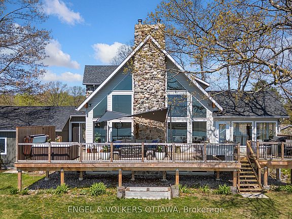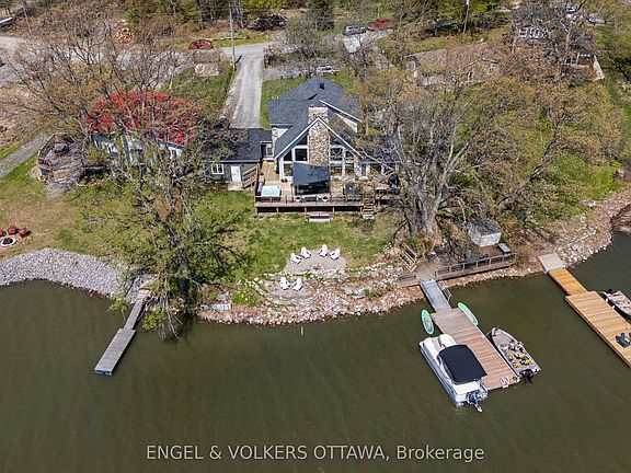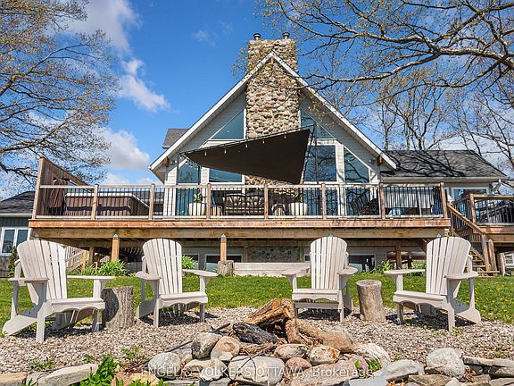 Exceptional Waterfront Living on Howe Island. Welcome to 69 Blue Heron, a beautifully updated 3+1 bedroom, 3 full bathroom home nestled in the quiet, sheltered waters of Johnson Bay. Set along the scenic St. Lawrence River, this turnkey property offers an incredible lifestyle, whether as a year-round home or tranquil getaway. Enjoy direct river access and breathtaking sunrise views from your newer dock, ideal for boating, fishing, or simply soaking in the peaceful surroundings. Inside, the home features cathedral ceilings and a bright four-season sunroom/dining area that brings the outdoors in all year round. There are two fireplaces in the main living room and another in the finished basement, offering cozy comfort on cooler days. The heart of the home is the beautifully reimagined open-concept kitchen, designed to impress with a massive island that comfortably seats six. Whether you're preparing a meal, hosting friends, or gathering with family, this space offers the perfect blend of function and flow. Over the past five years, the home has seen extensive updates: engineered hardwood throughout the main and second floors, durable laminate in the basement, all new baseboards, and stylish plumbing fixtures. Other upgrades include new exterior doors, select new windows, a water purification system, a newer furnace and air conditioning system, and a 1.5-car garage. Two expansive decks extend your living space outdoorsideal for relaxing or hosting by the bay. A rare opportunity to own a move-in-ready home on Howes Island, where peaceful island living meets the comfort of modern updates.