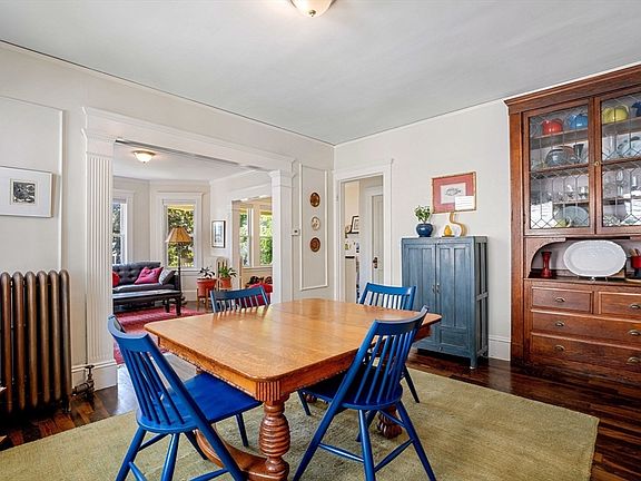 Nestled on a charming one-way street, this first-floor condo blends classic Boston character with modern updates. A private front porch leads to a versatile entryway, ideal as a home office, mudroom, or fitness nook. The spacious living and dining areas are flooded with natural light, accentuating the stunning original millwork, intricate moldings, built-ins, and a cozy mantled fireplace. Major updates since 2020 include a new roof, gas furnace, washer/dryer, tub tile, restored hardwood floors, electrical system, dishwasher, stove, and refrigerator. The eat-in kitchen boasts stainless steel appliances, a walk-in pantry, and great access to the rear porch. Private laundry and basement storage are in the basement with interior access and a walk-out side entrance. Outside, enjoy your private front and back porches, garage parking, shared yard and raised garden beds. Convenient access to commuter rail, bus routes, and major highways ensures seamless travel throughout the metro area.