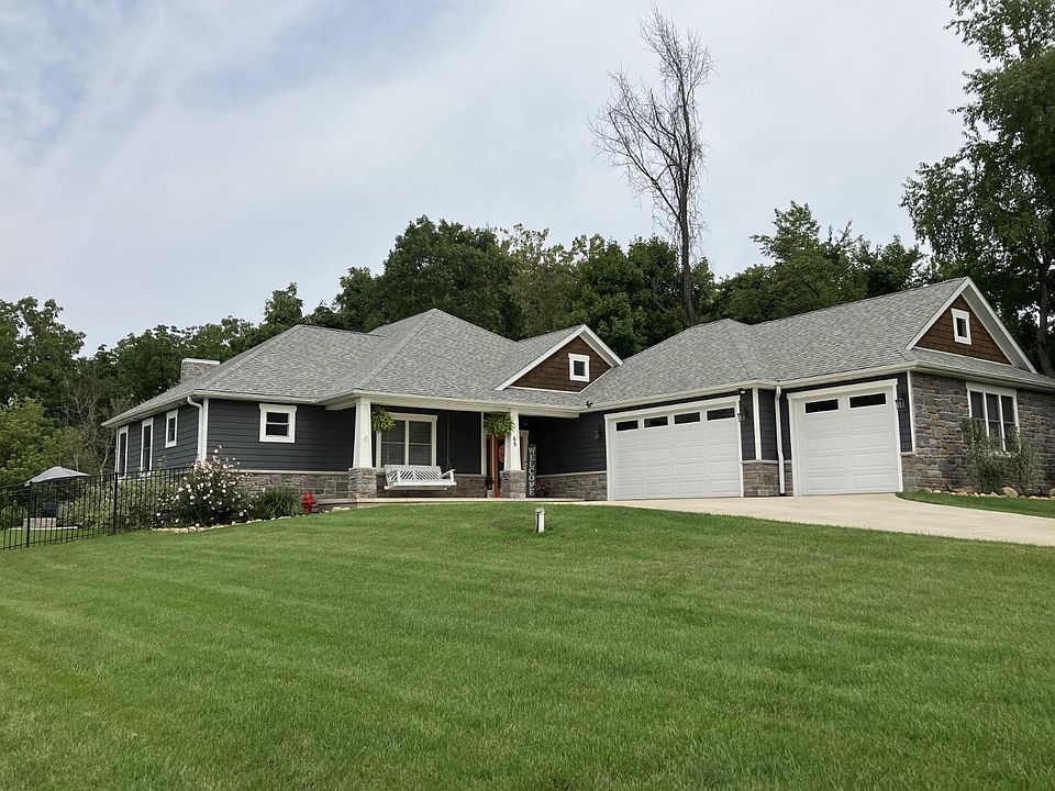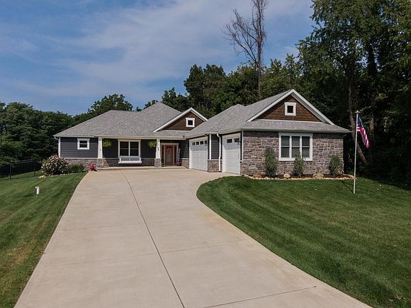 Serene and Pristine, RANCH home with 4 bedrooms and 4.5 bathrooms on 1.44acres, tucked alongside the natural beauty of wooded scenery and a tranquil pond. Main floor is open concept with an outstanding kitchen boasting a huge island and a walk in pantry, flowing to the living room with vaulted ceilings overlooking the backyard with an abundance of natural light. MAIN FLOOR Owner's bedroom has an attached ensuite with walkout access to the balcony. Two bedrooms with a jack and jill bath that is ADA compliant, 2 other bedrooms and another full bath are situated on the main floor along with a finished mud/laundry room and office. Entertaining or relaxing is made easy with an expansive rec space and superb wet bar that walks out to the lower level covered patio with hot tub! Not to mention, there is much more room available in the unfinished space. Complete with an oversized, heated 3 car garage and a perfect location, this house is just waiting for you to call it home!
