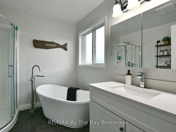 New to Market! All-Brick Raised Bungalow on Corner Lot. Welcome to this beautifully maintained all-brick raised bungalow, ideally situated on a corner lot in one of Wasaga Beach's most sought-after neighbourhoods. Just steps from Birchview Dunes Public School and a short walk to the Blueberry Trails for hiking, biking, and cross-country skiing, this home blends comfort, convenience, and lifestyle. Step inside to a bright open-concept floor plan featuring a kitchen with centre island, spacious eating area, and a cozy main-floor family room with a gas fireplace. A large, separate living room offers the perfect space for gatherings, while the walkout from the eating area leads to a large deck overlooking a fully fenced backyard complete with hot tub, heated above-ground pool, and fire pit area - ideal for entertaining or relaxing outdoors. The primary bedroom features a walk-in closet and a modern four-piece ensuite with a separate shower and standalone soaker tub. Main floor laundry adds everyday convenience. The finished basement provides even more living space with a large recreation room with gas fireplace, two additional bedrooms, and a full four-piece bath - perfect for guests or extended family. Additional highlights include a double car garage with inside entry, a large welcoming front foyer, new gas furnace (2024), and central air (approx. 3 years old). This home truly offers the best of Wasaga Beach living - space, comfort, and an unbeatable location close to schools, trails, and amenities.