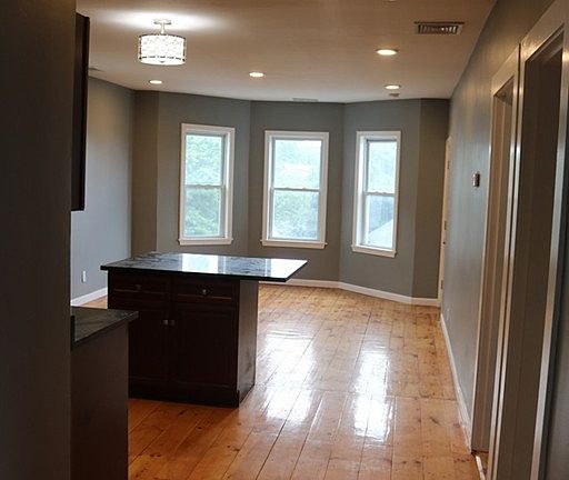 DELEADED. Property was completely gutted 2 years ago, stunning renovations! This beautiful open floor plan 3 bedroom unit features all newer wiring, newer plumbing, newer flooring, all newer windows, CENTRAL AIR, central heat. Also offers complete appliance package of stainless steel appliances, granite counter top, eat-in-kitchen already set up with a built-in island. Bathroom is beautiful. Washer and dryer in unit and for your convenience. The electric panel is also in the unit. One GARAGE PARKING and 1 additional off street parking. Water will be separately metered per unit. No smoking. No pets. Don't miss out!!.